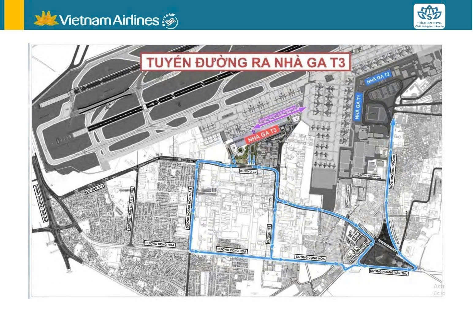 Lưu ý, giữa nhà ga T1 (nội địa cũ), T2 (quốc tế) và T3 có khoảng cách tách biệt; thời gian di chuyển giữa các nhà ga khoảng 20 phút tùy theo tình trạng giao thông. Để thuận tiện di chuyển từ T1 hoặc T2 (đối với khách nối chuyến) sang T3, hành khách có thể lựa chọn sử dụng xe shuttle bus miễn phí do Cảng hàng không quốc tế Tân Sơn Nhất bố trí (với tần suất trung bình từ 10 đến 20 phút mỗi chuyến), hoặc các loại xe công nghệ, taxi.
